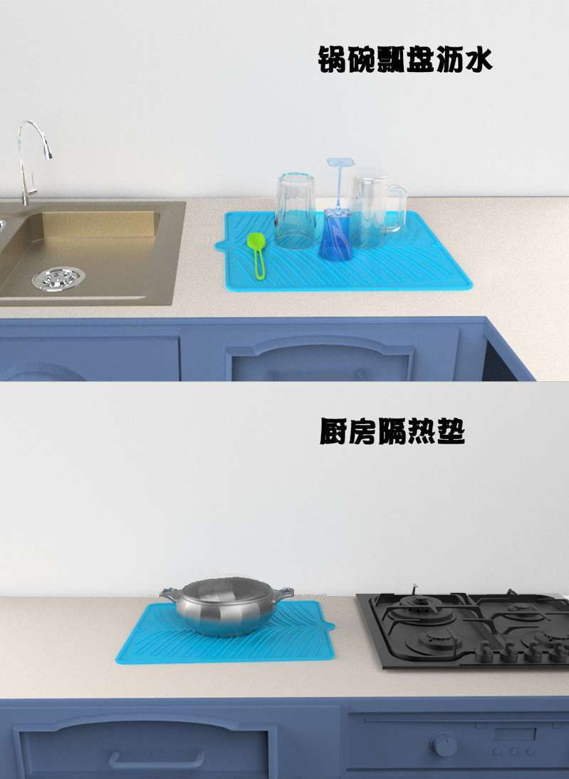 硅膠餐墊的設(shè)計同樣值得關(guān)注。從葉形、魚形到半圓形,多樣化的造型為餐桌增添了自然美感,而幾何紋理、植物圖案或純色系設(shè)計則能與不同家居風(fēng)格完美融合。例如,深色系餐墊適合搭配深色木質(zhì)餐桌,淺色系則能凸顯大理石臺面的簡約質(zhì)感。部分硅膠餐墊甚至支持拼接使用,既能作為隔熱墊保護(hù)中島臺面,又能作為茶席防止茶具滑動。這種“一物多用”的特性,不僅提升了空間利用率,也讓每一次用餐都充滿儀式感。