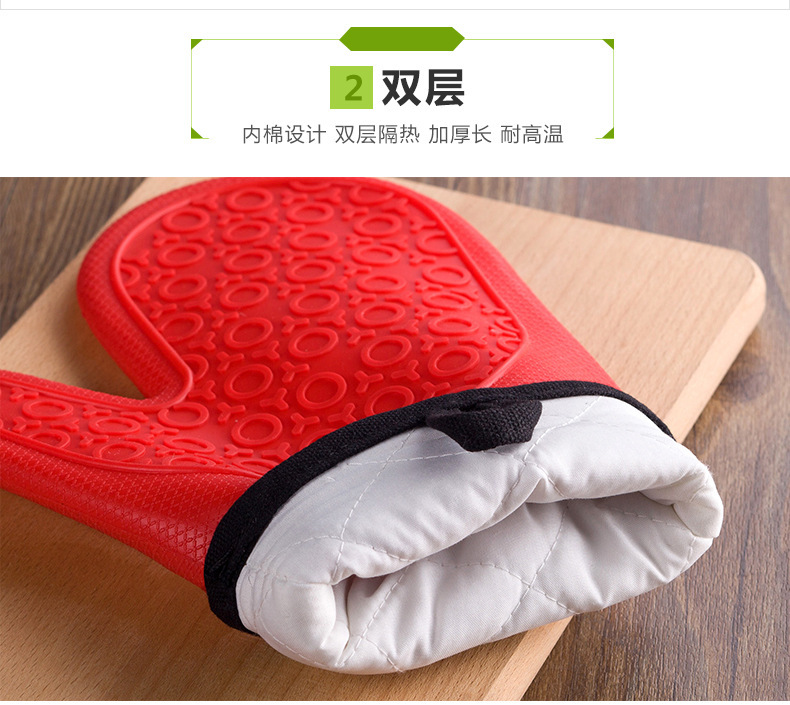 包裝:單只裝開口PP袋新款加長加厚雙層防燙硅膠手套,采用棉布加硅膠雙層防燙設計,棉布部分可以加印logo,雙層設計更加耐熱,該手套具有清洗方便、多重防滑、雙層耐熱、防水耐用等優(yōu)勢。