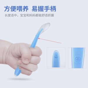 7、柔軟的硅膠小軟勺專為嬰兒設(shè)計(jì),幫助寶寶適應(yīng)從奶瓶到勺子的喂養(yǎng)轉(zhuǎn)變,無毒無味,不含化學(xué)物質(zhì),耐高溫煮沸,耐老化,不起粘性。產(chǎn)品硅膠部分可能吸收食物顏色后變色但不影響使用性能,適合剛學(xué)習(xí)進(jìn)食的嬰兒使用