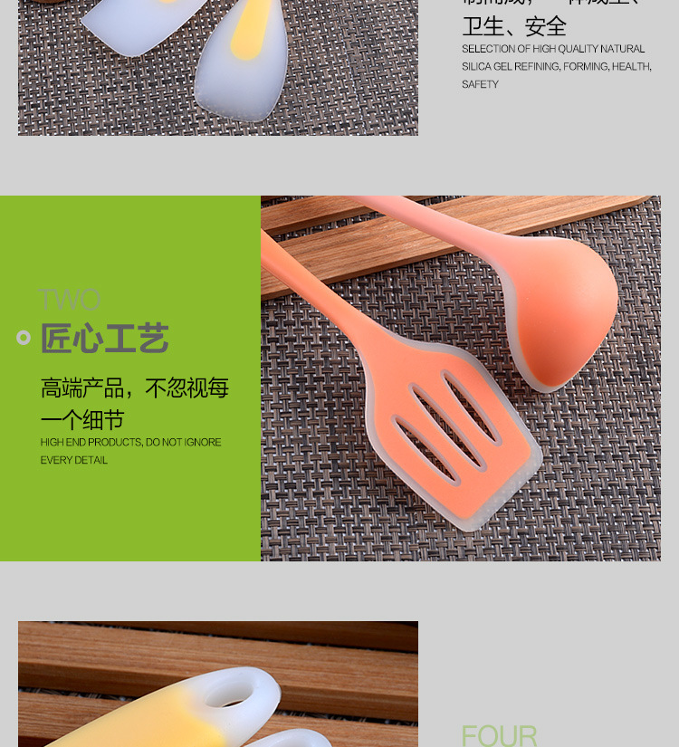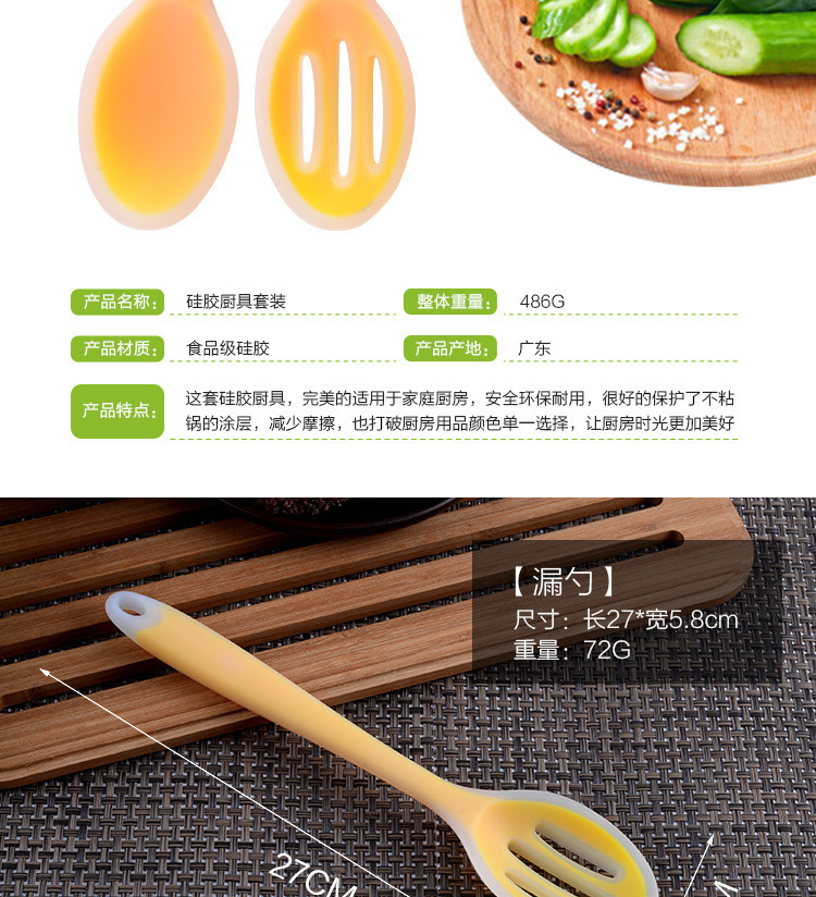 這套硅膠廚具完美的適用于家庭廚房,安全環(huán)保耐用,很好的保護(hù)了