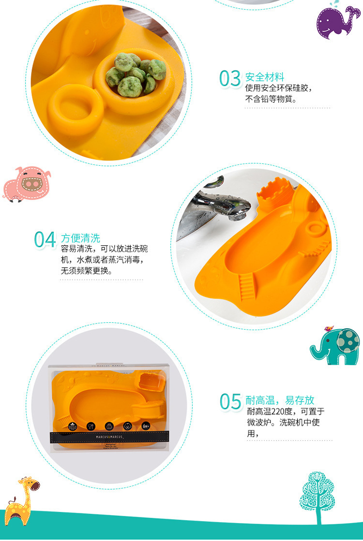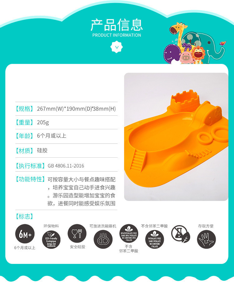5、餐盤+餐墊一體式設計,餐墊防滑設計,防止兒童小手打翻