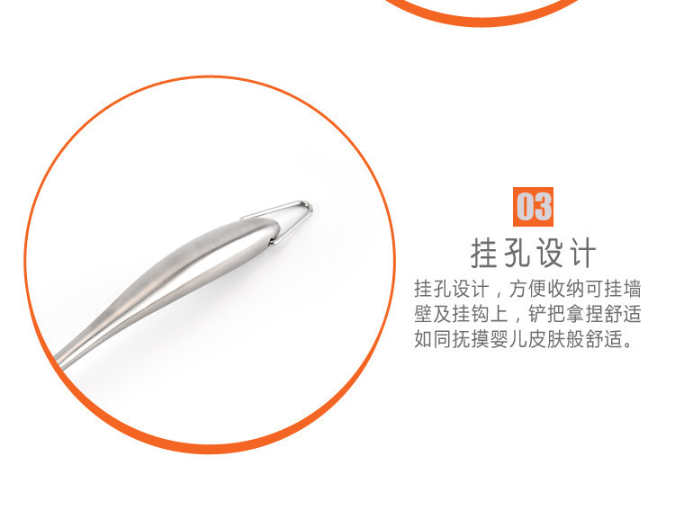 2、手柄采用優(yōu)質(zhì)不銹鋼制作,流線型的手柄設(shè)計,增加了鍋鏟本事的強度,防滑防燙,握感舒適